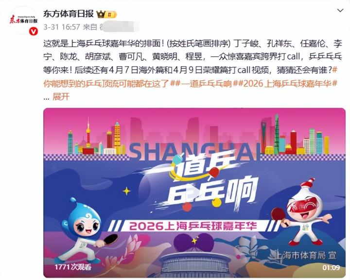 上海今年规模最大、规格最高的全民乒乓球盛事。