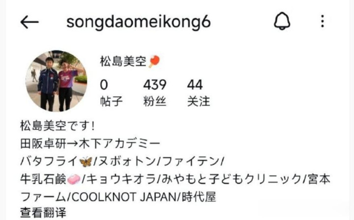 近日,细心的网友发现,松岛辉空的妹妹松岛美空的社交媒体头像,是她和孙颖莎的合照。照片里她笑着站在孙颖莎身边,比着剪刀手,脸上洋溢着难以掩饰的喜悦与敬佩之情。